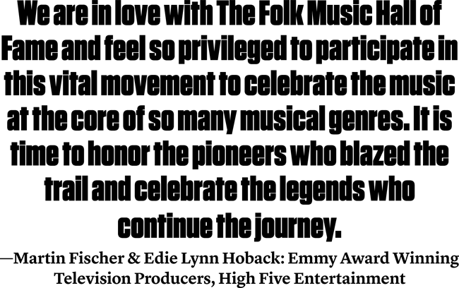 The Folk Music Hall Of Fame is a sponsored project of Fractured Atlas, a non-profit arts service organization. Contributions for the charitable purposes of the Folk Music Hall Of Fame must be made payable to "Fractured Atlas" only and are 'tax-deductible' to the extent permitted by law.